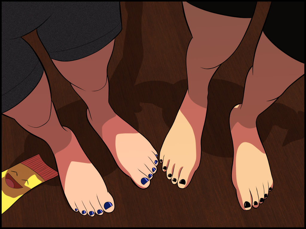 A pesar de que su olor era casi imperceptible (nada en comparación con mis zapatos bajos), retrocedí con un rubor febril. Y sentí un hormigueo. ¿Por qué lo hacía? No encontraba respuesta. Sin embargo, eso no me detuvo de seguir oliendo sus zapatos hasta que se terminó el agua. Antes de acostarme, me aseguré de que su almohada estuviera aún más cerca de donde estarían mis pies. Porque así, debido a su torpe costumbre de dormir, sus pies estarían justo delante de mi cara. No porque me gustaran. No, los pies son los pies: raros y asquerosos. Era solamente que quería estudiarlos un poco más.