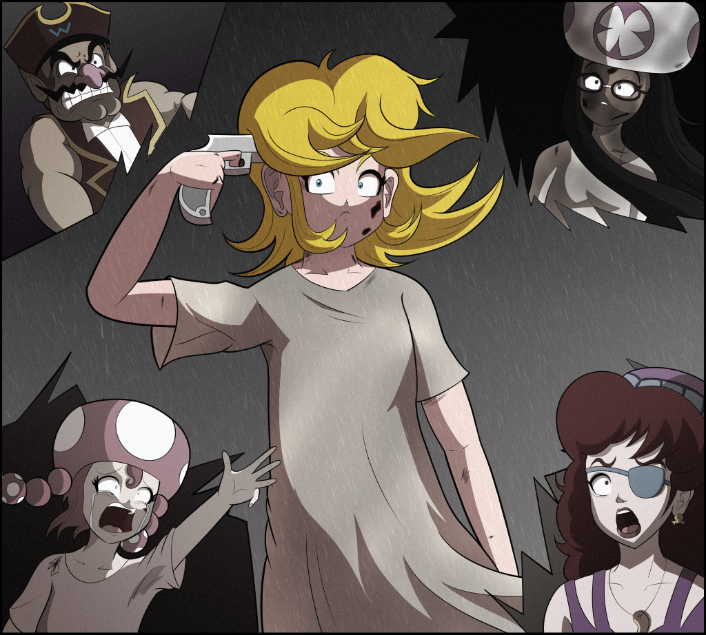 Luchan contra Wario. Más amigos, enemigos y pies sudorosos para Toadette, Minh y Toad. |